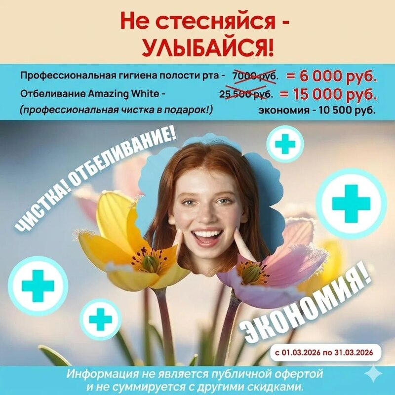 Дополните свой образ здоровой улыбкой и приятным настроением с волшебными праздничными скидкам от стоматологии ВТМ-Юг!